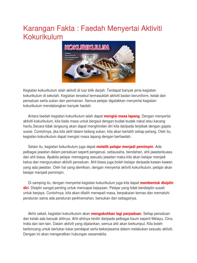 Karangan Spm Tentang Faedah Menyertai Kokurikulum Sekolah