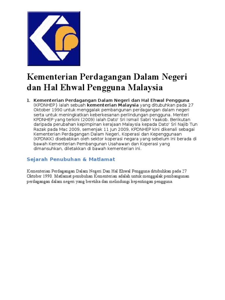 Kementerian Perdagangan Dalam Negeri Dan Hal Ehwal Pengguna Malaysia Pdf