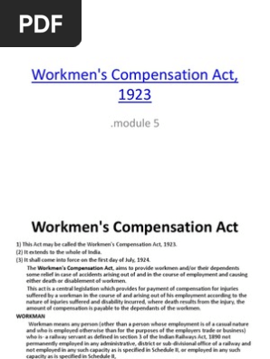 Workmen S Compensation Act 1923 Pdf Workers Compensation Government Of India