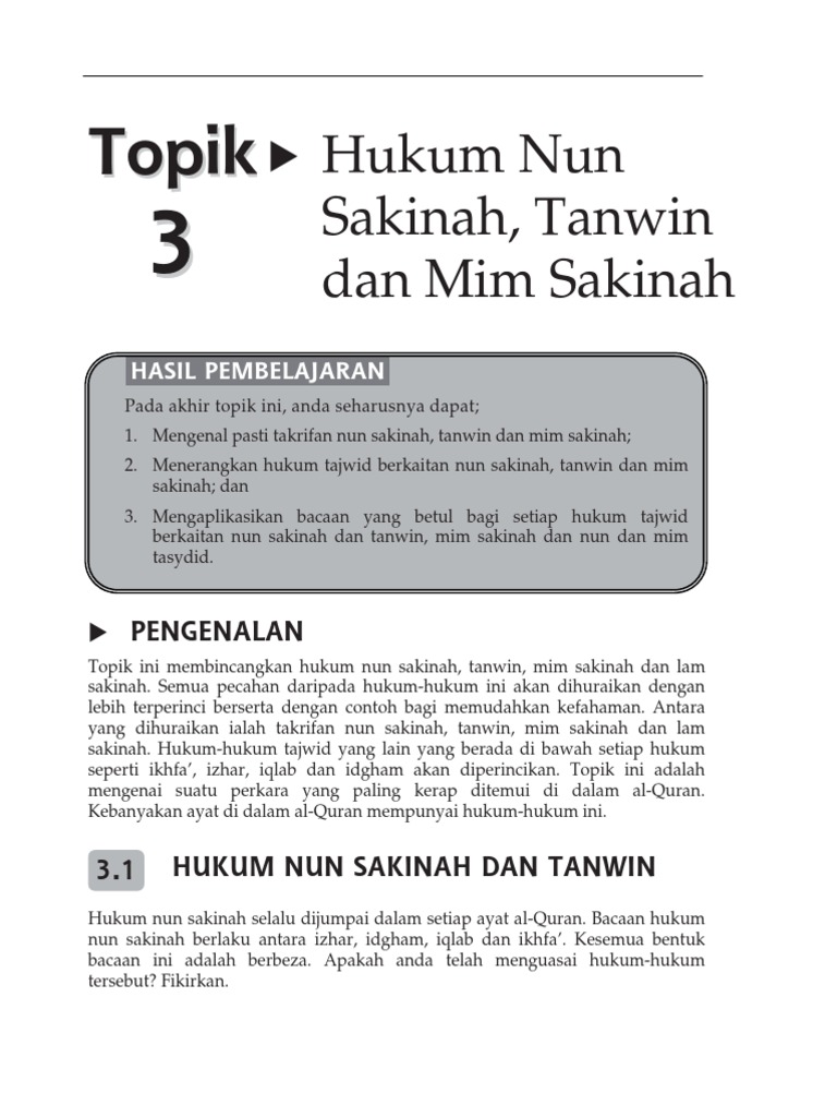 Topik 3 Hukum Nun Sakinah Tanwim Dan Mim Sakinah
