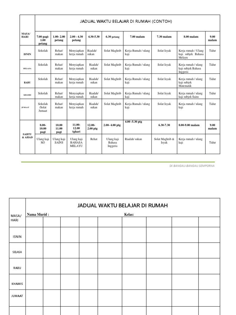 Jadual Waktu Belajar Anak Di Rumah Malayhama