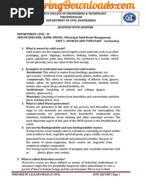 Pdf En6501 Municipal Solid Waste Management Lecture Notes Books Important 2 Marks Questions With Answers Important Part B 16 Marks Questions With Answers Question Banks Syllabus Learnengineering In