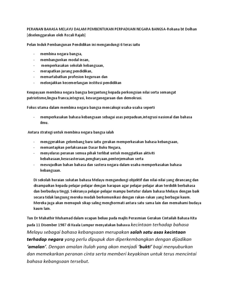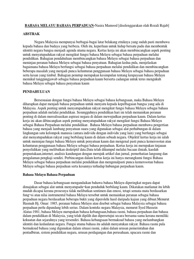 Bahasa Melayu Sebagai Bahasa Perpaduan Pdf