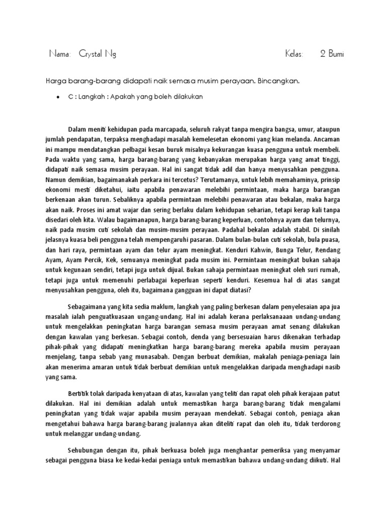 Karangan Pmr Langkah Mengatasi Kenaikan Harga Barangan