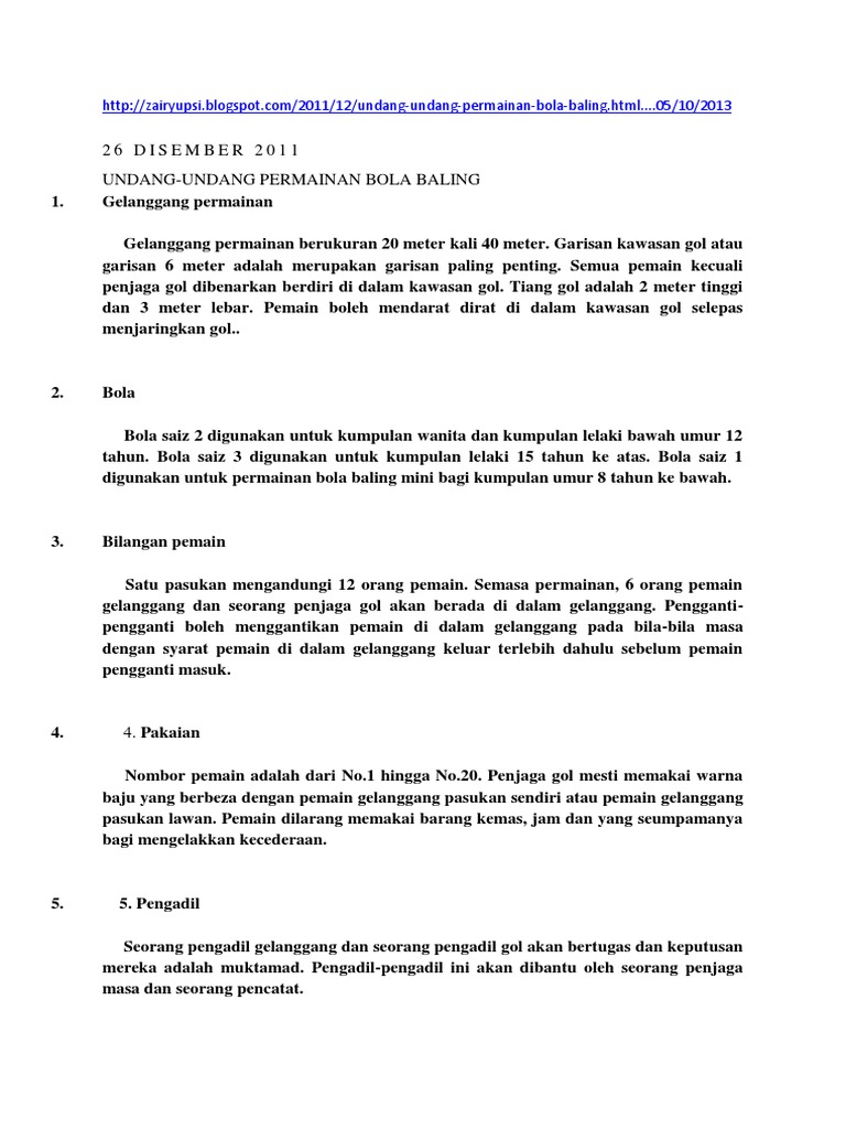 Undang Undang Dan Peraturan Dalam Permainan Bola Baling Pdf