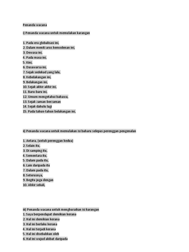 Penanda wacana untuk karangan stpm. 1 PENGGAL 1 1. Pada pendapat anda mengapakah masalah rasuah perlu dibendung. Selain itu penggunaan tatabahasa dan frasa menarik seperti penanda wacana serta peribahasa adalah digalakkan untuk pelajar gunakan dalam penulisan karangan masing-masing.